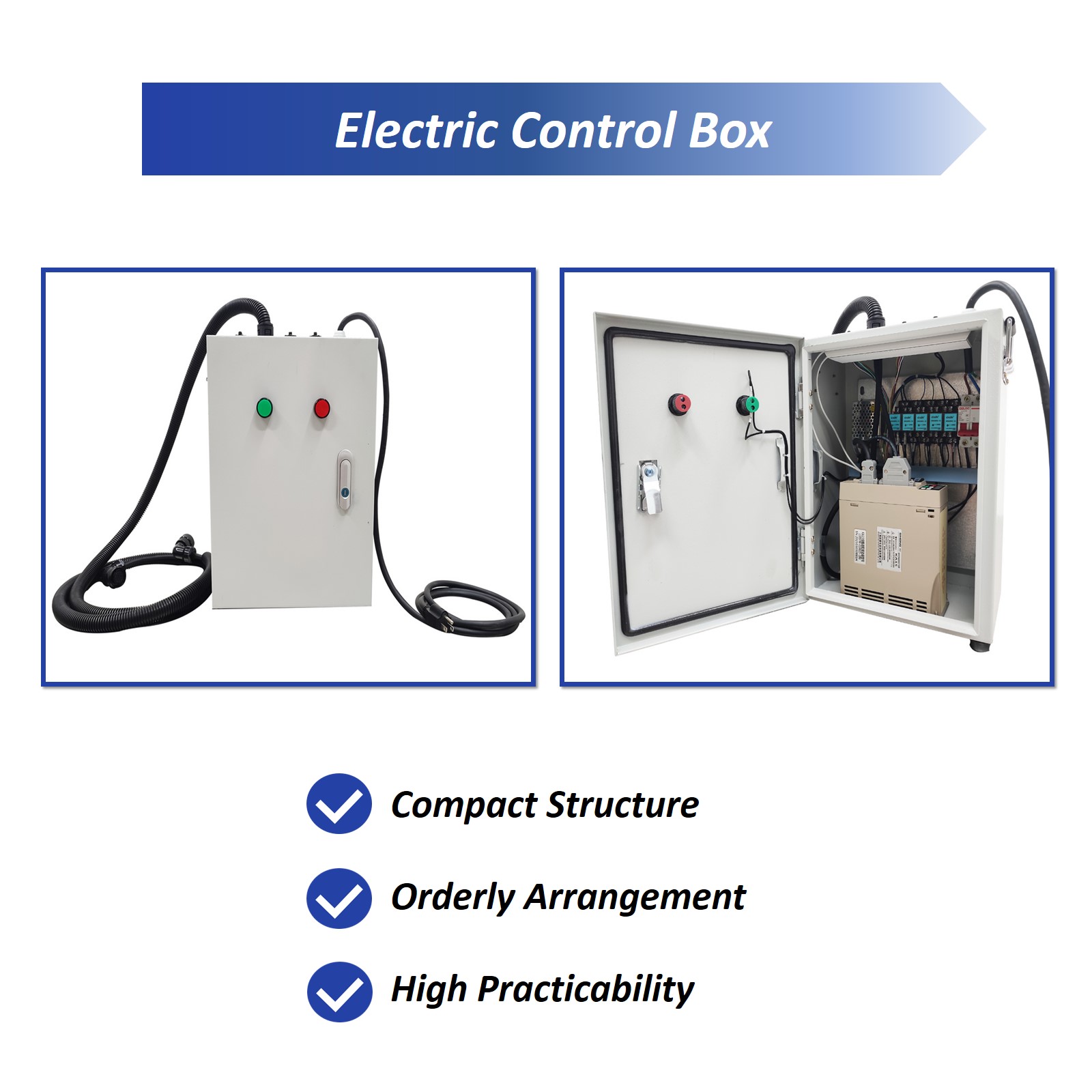 5. Choose the 110V power supply. Connect the plug of the electrical control box to the 110V power supply. When a generator is used, a voltage regulator is required.